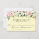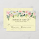 Este design de cartão RSVP de casamento alegre tem uma adorável borda floral de cor d'água de florais brancos e cor-de-rosa pincelada com verde de jardim espalhado por toda parte. O fundo é um amarelo ensolarado pastel, perfeito para casamentos de primavera e para o verão. Um emparelhamento de face de tipo elegante inclui elementos de caligrafia serif e manuscritos. Personalize o modelo de texto com a data de resposta necessária.