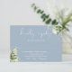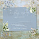 Este cartão de RSVP de casamento com folhas de verde botânico azul poeirento elegante pode ser personalizado com suas informações em tipografia sofisticada. Projetado por Thisisnotme©