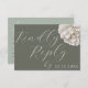 Cartão RSVP simples e elegante com grande floral de aquarela em um fundo verde escuro. Fácil de personalizar com suas informações exclusivas.