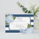 Cartão RSVP correspondente que pode ser misturado com qualquer um dos conjuntos desta coleção. Envelopes gratuitos estão incluídos para seus convidados retornar suas respostas. Você já amou os híbridos azuis de verão toda a sua vida? Lembram-vos de um romance de verão, da beleza do jardim onde vocês vão se casar? Eterno de amor, flores bonito combinadas com design ousado, simples e moderno? Tivemos vocês em mente quando criamos esta luz tocada, falso brilho jorrando fundo largo e moderno em azul marinho ousado com uma faixa branca que você pode mudar usando a ferramenta picador de cores em "personalizar". Para um toque de elegância, uma Arte Deco chamada borda de esquina entalada é prateada, branca e marinho e é colocada sobre a faixa contemporânea. A trabalho de arte que foi pintada manualmente em pastéis de petróleo por Audrey Jeanne Roberts é colocada em camadas acima de tudo. Um estilo impressionista e macio, um aglomerado floral de hydrangea azul flexível e solto, tem uma sensação antiga - mas é uma nova arte. Romântica. Simples. Tendência. Está disponível um conjunto completo de convites para casamento. Audrey Jeanne Roberts, todos os direitos reservados.