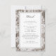 Cartão russo de detalhes do casamento com uma vibração vintage, apresentando um impressão romântico de flores em forma de país branco sobre cinzas de madeira termal.