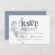 RSVP | Opções de Menu - Um buquê translúcido de rosas aquarela em azul empoeirado - O verso é azul ardósia empoeirado. Personalize o texto, estilo de fonte, cor e tamanho. Arte original criada para a BarefootBride™ por © WhimsicalArtwork™ - Esta é parte de uma Suite de Papelaria de Casamento completa com papelaria de casamento, chá de bebê e outros eventos.
