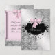Convite de chuveiro de bebê menina princesa rosa e preto com lustre rosa preto prata.