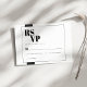 Apresentando nossa placa RSVP Mínima Preta e Branca, uma combinação perfeita de simplicidade e elegância para seu evento especial. Esta placa x 5" de 3,5" apresenta um design limpo com a palavra "RSVP" exibida de forma destacada em preto sobre um fundo branco. O verso fornece espaço para os convidados preencherem seus nomes e preferências de presença. Impresso em papel mate de alta qualidade, este cartão garante um eterno e um toque sofisticado na papelaria de casamento