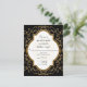 Retorno de resposta RSVP correspondente por cartão de correio, incluindo envelope branco. NOTA: este é um convite impresso em formato simples, não há uma folha de metal ou brilho real. Os efeitos são produzidos graficamente. COLLECTION: A partir do momento em que a caligrafia de espiral desenhada à mão floresce, que se transformou em efeito de brilho gráfico e é emparelhada com uma moldura de estilo quatrefoil de borda dupla, também em efeitos de brilho de ouro. Dentro do quadro e atrás de seu modelo de texto facilmente personalizado está um design de linha desenhada à mão por raio solar. No verso está um lugar para colocar o seu dentro inicial de monograma no design de explosão de estrelas. Este convite é o casamento perfeito de design sentimental doce, romântica e elegância moderna. Fácil de personalizar para qualquer ocasião e um conjunto completo de produtos está disponível. CORES: cor preta a jato ebony, cor de branco-sujo e aspecto digital de brilho dourado.