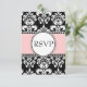 RSVP Rosa Macio em Damasco Preto para Convites Qua
