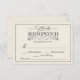 Cartões de resposta RSVP de Casamento simples mas elegantes. Estilo ventiço antigo branco vellum com motif floral vitoriano e tipografia retrô. Perfeito para casamentos modernos e rústicos com um sofisticado toque de classe. Espaço extra incluído para os convidados do casal para gravar uma solicitação especial de música. Nota: Esta é uma placa de papel com uma imagem IMPRESSA de pergaminho para efeito decorativo. Convocação e coordenação de acessórios de papelaria disponíveis.
