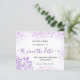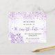 Uma garota e moda Salve o cartão de data para uma Quinceañera, 15 festa de aniversário. Um fundo branco de na moda, decorado com pó brilhante violeta, colorido de lavanda e um vestido. Personalize e adicione uma data e nome/idade. Letras pretas e violetas. O texto: Salvar a Data é gravado com um script de estilo com letra de tendência grande.