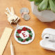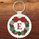 Esta festiva chaveiro de coroa geométrica de Natal apresenta um monograma personalizável. A coroa do design digital original é feita de pontos verdes em três tons e tamanhos diferentes. Uma fita de pontos vermelhos menores que lembra os ventos de groselhas ao redor do padrão circular. A coroa é tocada com um arco vermelho. Imagem criada digitalmente. Copyright © 2012 Claire E. Skinner. Todos os direitos reservados.