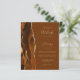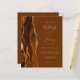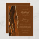 Economize o custo de imprimir e enviar cartões RSVP separados com este elegante convite de casamento de orçamento integral. A borda esquerda apresenta uma cor de água laranja queimada e ferrugem, borda agitada com brilho dourado. O texto personalizável combina manuscritos dourados, copperplate e fontes itálicas em um fundo marrom noz. O verso fornece espaço para detalhes do casamento em um fundo castanho noz-moscada sólido, junto com um código QR que os convidados podem digitalizar para visitar seu site e RSVP.