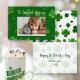 Cartão com fotos de trevos verdes para avós na Rua. Dia de Patrick. Um carro horizontal dobrado tem um lugar para uma foto na frente, emoldurado em verde. O texto branco no topo pode dizer "para" com nome/nomes. Dentro, adicione sua mensagem e assinatura sobre um fundo de trevos de quatro folhas. Este cartão vem em três tamanhos. Apesar de a amostra ser enviada pelos netos, é um cartão ponderado enviar a qualquer pessoa nas férias irlandesas.