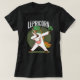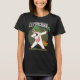 Um design bonito para Ruas. Dia de Patrick, esta camiseta única para mulheres tem um "lepricorno" branco (uma cruz entre um unicórnio e um duende). Ela está vestindo um chapéu verde de duende e segurando uma pedra de xamelo. É uma maravilhosa escolha temática irlandesa para a Rua. Comemorações do Dia de Patrick ou para qualquer época do ano.