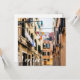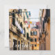 Pintura de beco estreito com secagem da roupa no terreiro entre paredes altas, Veneza, Itália. Bandeira americana. Rua estreita com prédios coloridos em Veneza e roupas secas em uma corda