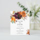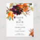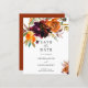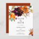 Casamento de boho floral russo Salve a data com um buquê floral pintado de cor d'água com tons quentes e úmidos de laranja queimada, terracota e burgundy profunda junto com um pouco de verde. Este elegante Salve a Data com as ricas sombras do outono é excelente para um casamento outono.