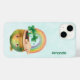 Uma capa de telefone com uma ilustração adorável com um pote sorridente verde e dourado com um arco-íris fofo, uma nuvem feliz e um pouco de trevo verde. Perfeito para Ruas. Dia de Patty.