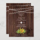 Ponha o tom para a celebração do seu país com estes itens de papelaria de casamento rústicos, com um fundo de madeira quente, luzes brilhantes de cordas e belos jarros de mason. Perfeito para casamentos de celeiros, celebrações ao ar livre, ou cerimônias aconchegantes à noite, esta design rustica cria uma atmosfera acolhedora e romântica. Personalize com seus nomes, detalhes de casamento e informações de evento para artesanato da papelaria perfeita que reflete seu estilo rústico.