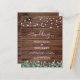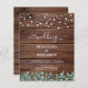 Convide amigos e família para o seu casamento com esta madeira elegante, mas rústica, com luzes de cordas e cartões de convite para casamento de eucalipto verde. Esses convites únicos de casamento de condados russos apresentam elegantes luzes brancas de cordas em madeira de celeiro com design botânico verde-verde. Personalize esses convites de casamento apressados com nomes, data de casamento e local. Veja nossa coleção de casamento para convites de casamento, álbuns de fotos de casamento, livros de hóspedes, presentes de festas e muito mais! COPYRIGHT © 2020 Judy Burrows, Black Dog Art - Todos Os Direitos Reservados. Rua Rústica Do Orçamento Luzes Eucalyptus Wedding Inv