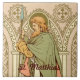 Fonte da imagem (RLS 11): Imagem antiga de Ruas. Matthias, o Apóstolo, em cromolitografia, com acentos de marrãs de Santos de Letras Vermelhas: Ser uma Série de Biografias dos Santos para os quais Coletas, Epistolas e Evangelhos Adequados são nomeados no Livro de Orações Comuns. Impresso por E. Kaufmann, Lahr, Baden, Alemanha, para a Sociedade para a Promoção do Conhecimento Cristão / S.P.C.K. (Londres, 1911), p. 22. Da biblioteca privada do designer. + Banquete: 14 de maio + Texto está em vermelho-escuro (# 460000) que corresponde ao contorno da figura.