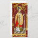 Esta é uma versão colorida da gravura antiga apresentada como nossa Rua Thomas Becket Segurando uma Espada (M 033). Ao chegarmos à nossa reconstrução visual, seguimos a descrição de Francis Joseph Baigent que descobriu, desenhou e publicou no Diário da British Arqueological Association, Vol X (1855), pp. 74-75. Citamos: "A figura mais bonita deste santo que talvez tenha sido preservada em qualquer igreja deste país está representada na placa de acompanhamento (ver placa 6). Esta situação foi denunciada no ano de 1845, e foi depois bem preservada e, evidentemente, encoberta, de propósito, para evitar a sua destruição... A pintura, gravada em metade do tamanho do original, é pintada dentro de um painel afundado em frente à Páscoa de John Waller, esq., na festa, igreja de Stoke Charity, Hants. ... Rua. Thomas de Canterbury, neste exemplo, está representado segurando em sua mão direita uma espada, sendo um emblema de seu martírio. O nimbus que rodeia sua cabeça é uma marrã, sendo a luva branca e azul de revestimento; a face é nobre e digna, com uma expressão de esterilidade, mas ainda agradando. Foi observado que as pinturas que nos foram entregues por este santo, tudo parece ter sido feito a partir de algum retrato original; e, em todos os casos, ele está representado sem qualquer peso. Essa pintura, certamente, confirma essa opinião da forma mais forte, a partir das características de caráter tão peculiar. O arcebispo está representado em vestígios de ouro, como seria vestido durante a oitava do banquete da Natividade do Senhor, a época do seu martírio; o dalmático, de acordo com a rubria, é de cor vermelha brilhante com franja ouro; sobre o cascalho está representado o pallium metropolitano ornamentado com suas cinco passadas de patê fitchée, dois superiores provavelmente são pinos. A sandália é de cor azul brilhante com a cruz em ouro. Seu crozier, que está preso na mão esquerda, também é marrã; com exceção do funcionarios, pintado de branco, destinado talvez a indicar prata. Vimos esta pintura algumas semanas depois, e achamos sua condição longe de satisfatória, que a face e outras partes estavam muito feridas: ..." Utilizámos o nosso juízo na coloração de pormenores que não foram descritos de outra forma. Thomas Becket é patrono do clero secular. + Banquete: 29 de dezembro + Crédito da Imagem: A versão colorida é um Santo_Aplenty Exclusive (SAE).