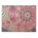 Um desenho fratural brilhante com espirais ornamentados de vermelho escuro e vívido, sobrepostas com filigrana de ouro como conchas metálicas e estudadas com rubis reluzentes.