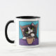 Caneca lunática do divertimento que caracteriza um gato preto que tem uma ruptura de chá. Trabalhos artísticos originais: acrílico no © das canvas Lisa 2008 Marie Robinson