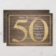 Rustic Surpresa 50º Convite de Aniversário. Dourada Festa de aniversário de Glitter Convide com o Fundo Russo de Madeira. Surpresa Aniversário. Aniversário Adulto. Homens ou Mulheres Bday Bash Party. Para mais personalização, clique no botão "Personalizar" e use nossa ferramenta de design para modificar este modelo.