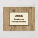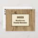 Reuniões familiares são ocasiões especiais que nos dão a oportunidade de fazer novas memórias com parentes distantes. Este anúncio de convite apresenta um design de grãos de madeira na frente, juntamente com um grande retângulo sólido que fornece o fundo do seu texto. A parte traseira deste cartão postal oferece espaço amplo para incluir as informações do evento. Todo o texto pode ser personalizado rápida e facilmente para o seu evento. Nossa coleção de reagrupamento familiar está crescendo constantemente. Se você está procurando algo especial, entre em contato conosco e podemos criar algo especialmente para o seu evento.