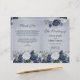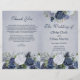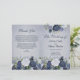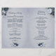 Um belo e elegante programa de casamento com rosas azuis e brancas pintadas em um fundo azul elegante e empoeirado. Você pode personalizar o texto adicionando sua própria mensagem especial e também pode alterar o estilo da fonte, a cor e o posicionamento, acessando o menu personalizar.