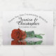 Estas belas etiquetas de garrafas de vinho espumante miniatura são perfeitas como uma adição ao seu saco de permutas de noivas, ou simplesmente por agradecer aos convidados e à família. O design deslumbrante apresenta uma imagem de um rosa de cor laranja ou cinzenta, manchado, de solteiro longo, que se encontra sobre o lado, refletindo numa piscina de água. O texto diz: Obrigado por celebrar conosco! Há espaço para os nomes do casal, a data do casamento e o tipo de vinho espumante ou outro conteúdo da garrafa.