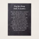 Rústica Simpatia de Chalkboard Cartões Funerais De Oração. Este simples e único cartão de oração memorial contém 3 fotos, em um design de quadro chalkboard rústico. Frente "In Loving Memory" Personalize este cartão de oração funerária memorial com fotos, nomes e datas de seus entes queridos e sentimentos. Volte ~ 'Que você sempre caminhe ao sol' Poema, que pode ser personalizado, por favor, alcance se você quiser uma design com um poema específico que não seja. Este cartão de oração memorável será um guardião precioso, para os serviços funerários e para a celebração da vida. COPYRIGHT © 2020 Judy Burrows, Black Dog Art - Todos Os Direitos Reservados. Rustic 3 Photo Memorial Funeral Prayer Card
