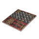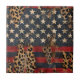 Distressed American flag with bold leopard print overlay on rustic wood texture. Ideal for patriotic women, country style lovers, and those who love bold USA-inspired ceramic tile.