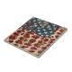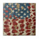 Distressed American flag with bold leopard print overlay on rustic wood texture. Ideal for patriotic women, country style lovers, and those who love bold USA-inspired ceramic tile.