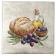 Rustic watercolor olive oil witch fresh baked bread and olives. A rustic country look. Perfect for your country French or cottage farmhouse kitchen.
