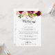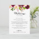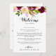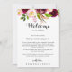 Esta risada carta de boas-vindas a um casamento burgundy é perfeita para um casamento simples. O design apresenta flores cor-de-água, cor-de-rosa, esbranquiçada, vermelha, burgundy e bordo, com folhagem verde. Personalize a frente com uma mensagem de boas-vindas para seus convidados e seus nomes. Personalize as costas com a programação de eventos e outras informações úteis.