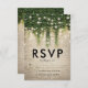 Cartões rsvp de casamento de conto de fadas mágico com fundo de tijolos de pedra rústico, videira verde com luzes cintilantes e uma modelo de resposta moderna.