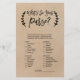 Este jogo rústico de "como você conhece a noiva" é perfeito para um chá de panela de tendências. A frente do cartão de jogo apresenta "como você conhece bem a noiva", e a parte de trás do cartão contém "o que há na bolsa". A design apresenta uma tipografia divertida, escrita à mão, com deliciosos laços e espirais cercados por uma simples coroa de oliveiras. Personalize a parte frontal da placa com o nome da noiva e a data do chá de panela. Por favor, observe que isto não está impresso em papel kraft real. É um gráfico de alta qualidade feito para parecer papel kraft.
