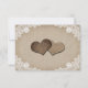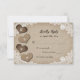 Cartões RSVP de Casamentos Russos Vintage inspirados por burlap e lace. Personalize facilmente estes cartões de resposta românticos do país rústico que apresentam corações em burlap contra uma colmeia angustiada e fundo de rendas enfeitiçados com luzes de cordas.