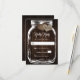 Cartões RSVP personalizados de madeira rústica e de bote de mason apresentando um boião de mason com dois corações de burlap contra um fundo de madeira rústica. Personalizar facilmente online. Itens correspondentes disponíveis para complementar esses cartões RSVP de casamento RSVP de mason jar rústico.