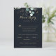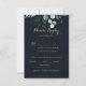 Estes cartões de escolha de cardápio azul de casamento floral de ouro rústico são perfeitos para um casamento simples. Este design artístico apresenta folhagem verde de ouro, feita à mão, e cor d'água, eucalipto, em um fundo azul escuro, inspiradora beleza natural.