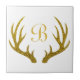 Azulejo de cerâmica de vidro elegante, russo, com uma silhueta e letra de monograma de impressão-brilho falsa.