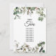 Um belo número de mesa com nomes de hóspedes design com folhas de eucalipto rústicas, verde-safra e aves. Um design elegante ideal para qualquer tema de casamento. O reverso da placa mostra o mesmo design. Também estão disponíveis itens de papelaria de casamento e outros formatos de convite de casamento. Personalize o número e os nomes de convidado e adquira cada número do mesa individualmente de acordo com quantos números de tabela você precisa.