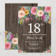 Rustic Floral 18º Aniversário Convite para Mulheres. Flor Floral de Aquarela. Campo De Vintagem Da Madeira Rústica. Rosa, Amarelo, Laranja, Flor Roxo. Aniversário Adulto. 13 15 16º 18º 20 21rua 30 40º 50º 60º 80 de 70 100º, qualquer idade. Para mais personalização, clique no botão "Personalizar" e use nossa ferramenta de design para modificar este modelo.
