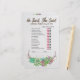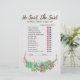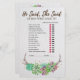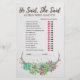 Esta descoberta floral rústica que o jogo de hóspedes é perfeito para um chá de panela do tema do deserto. A frente do cartão de jogo apresenta "ele disse que ela disse" o que é um teste divertido sobre noiva e noivo. A parte de trás da placa apresenta um jogo divertido de quebra-gelo: "encontre o convidado". A design apresenta ótimas suculentos verdes, cor-de-rosa e roxo, dispostos em uma coroa de galho e acentuados com falso confete de ouro. Personalize o cartão de jogo com o nome das noivas.