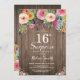 Rustic Floral Surprise 16º Aniversário Convite para Mulheres. Flor Floral De Aquarela, Fundo De Madeira Rústica. Vintage Retro. Aniversário de criança. Mulher Menina Adolescente Adolescente Bday Bash Convidam. 13 15 de 16º 18º 20 21rua 30 de 40º 50º 80 de 60º 70 de 100º. Qualquer Idade. Para mais personalização, clique no botão "Personalizar" e use nossa ferramenta de design para modificar este modelo.