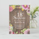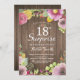 Rustic Floral Surprise 18º Aniversário Convite para Mulheres. Camada de água Floral, Rosa, com fundo de madeira rústico. Para mais personalização, clique no botão "Personalizar" e use nossa ferramenta de design para modificar este modelo.