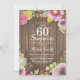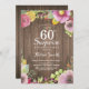 Rustic Floral Surpresa 60º Aniversário Convite para Mulheres. Camada de água Floral, Rosa, com fundo de madeira rústico. Para mais personalização, clique no botão "Personalizar" e use nossa ferramenta de design para modificar este modelo.