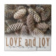 Cones de pínus festivos e rústicos acentuam este clássico, elegante design desejando um feriado de Amor e Joy.