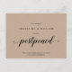 Este é o moderno e mínimo Rustic Kraft limpo, com tema design, em preto, convite de Festa de casamento Reprogramado (adiado/adiado). É a maneira perfeita e elegante de fazer o anúncio de reagendamento para seus amigos e família.