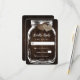 Cartão RSVP de Casamento Russo apresentando um jarro de mason com dois corações de burlap contra um fundo de madeira rústica. Personalize facilmente este RSVP romântico online. Itens correspondentes disponíveis para complementar este cartão RSVP de casamento.