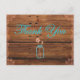 Peach & Teal Rustic Mason Jar Obrigado por anotar cartões postais. Excelente de aniversário, casamentos, noiva ou Chás de fraldas, qualquer outro evento ou só por causa! Veja a minha loja para ver a noiva ou chá de casamento, Chá de fraldas e Convites de Casamento. Também disponível com imagem personalizável.